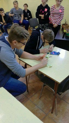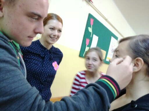 Ostatniego dnia września na chłopców z III a czekała moc atrakcji. Koleżanki z klasy przy wsparciu wychowawczyń stanęły na wysokości zadania i zorganizowały niezapomniany Dzień Chłopaka. Oprócz tradycyjnych upominków i pysznych wypieków, przygotowały również niebanalne wyzwania, entuzjastycznie przyjęte przez kolegów. Chłopcy mieli okazję sprawdzić się w różnorodnych zadaniach podzielonych na trzy kategorie: próba zręczności, próba mądrości i próba odwagi. Zmierzyli się oni między innymi z wykonaniem makijażu na modelce, pomalowaniem paznokci koleżance, obieraniem jabłka, zaplataniem warkocza czy przyszywaniem guzika. Na szczęście wszyscy uczestnicy zmagań dopingowani przez żeńskie grono imprezy poradzili sobie doskonale. Zasłużyli tym samym na specjalną nagrodę – dziewczęta wręczyły im własnoręcznie wykonane odznaczenia „Chłopak na medal”. Na koniec wszyscy wspólnie wykonali taniec integracyjny i we wspaniałym nastroju zakończyli świętowanie.