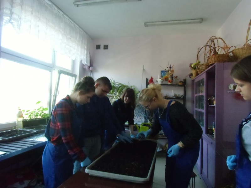 Uczestnicy rekrutujący się z klas I-IV naszego technikum już przystąpili do pracy. Założyli  hodowle roślin, których będą potrzebować w realizacji kolejnych zadań, wykonali niezbędne prace porządkowe na terenach zieleni wokół szkoły.