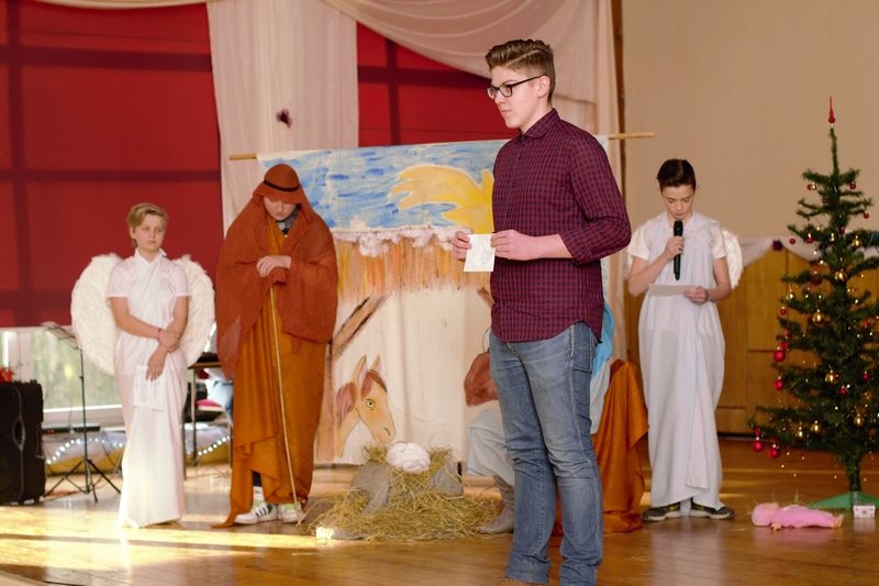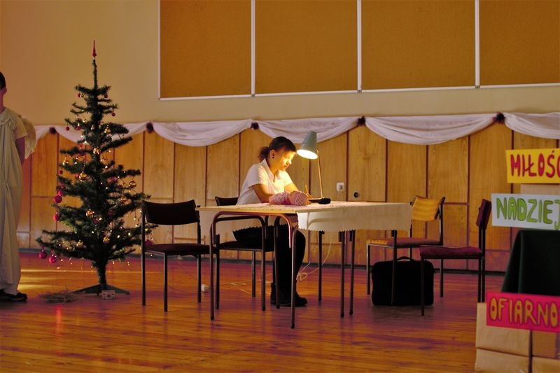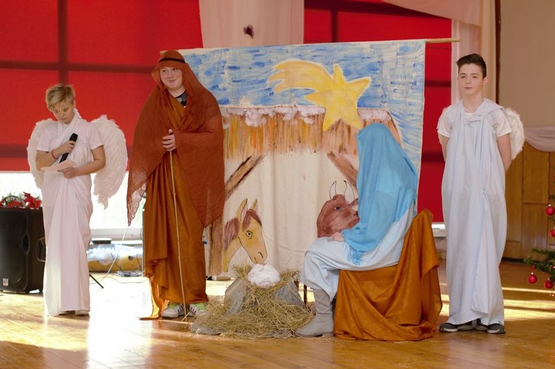 W ostatnim dniu poprzedzającym przerwę świąteczną, na którą większość czeka z utęsknieniem, w ZSP w Samostrzelu odbyły się tradycyjne szkolne jasełka. Wzruszający i skłaniający do refleksji montaż słowno-muzyczny pt. „Prezent dla najbliższych” przygotowali uczniowie klasy IIIa pod opieką pana Andrzeja Saji i pani Weroniki Roli. Nie zabrakło również kolęd i pastorałek. Przy akompaniamencie pana Krzysztofa Troczyńskiego zaśpiewały je uczennice gimnazjum – Julia Iwanek oraz Kinga Mierwa. Dyrektor szkoły, pani Małgorzata Ciechanowska oraz przewodniczacy Samorządu Uczniowskiego, Szymon Wójcik złożyli wszystkim świąteczne życzenia. Na koniec uczniom wręczono liczne nagrody zdobyte w różnorodnych konkursach. Po uroczystym apelu wszyscy udali się na klasowe wigilie.