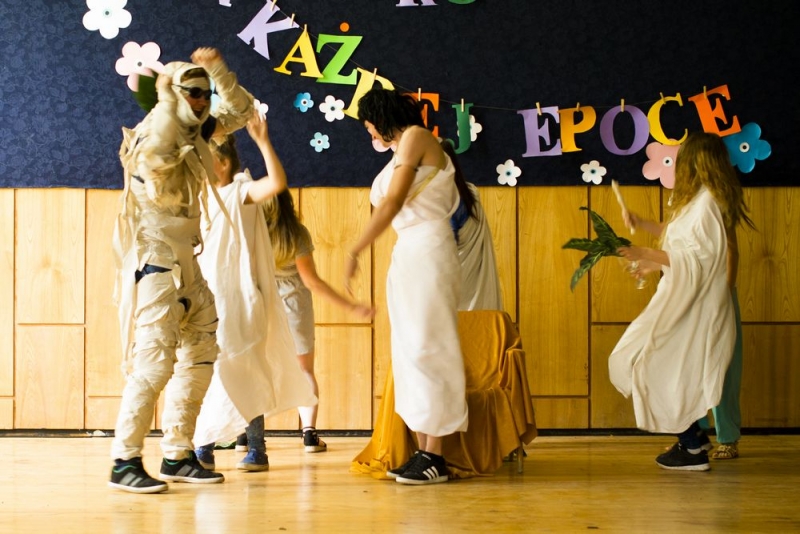 W tym roku podczas obchodów Dnia Dziecka w ZSP w Samostrzelu tematem przewodnim były epoki historyczno-literackie, a także zdrowy styl życia. Klasy przygotowały prezentacje na temat wylosowanych epok. Pomysłowość jak zwykle zaskoczyła wszystkich – były sceny wydarzeń historycznych, inscenizacje fragmentów utworów literackich rodem z określonej epoki, charakterystyczne postacie i stroje epokowe. Następnie reprezentanci klas brali udział w quizie o zdrowym stylu życia. Po części artystycznej w auli wszyscy uczestnicy zabawy udali się na salę gimnastyczną i teren wokół szkoły w celu sprawdzenia swych sił w dziecięcych konkurencjach sportowych, takich jak skoki przez linkę, skakankę, rzut do celu, podbijanie piłki, gra w „kółko i krzyżyk” i inne, poprowadzonych i ocenianych przez nauczycieli wychowania fizycznego: Radosława Hyży, Teresę Domalewską, Marka Żurka i Michalinę Damską. W tym samym czasie część uczniów klas wraz z wychowawcami przygotowywała przepyszne i zdrowe sałatki owocowe i warzywne, które po ocenie przez jury można było skosztować. Na koniec wszyscy otrzymali słodki poczęstunek ufundowany przez Radę Rodziców. Wszystkie konkurencje, oprócz sportowych, oceniało i punktowało jury w składzie Bernadetta Sobierajska, Jolanta Kabat i Alicja Szwejkowska-Radtke. Nad organizacją i przebiegiem imprezy czuwał Samorząd Uczniowski, a imprezę poprowadziły przewodnicząca SU Weronika Dorosz i członkini Rady Siedmiu Marta Lipecka.