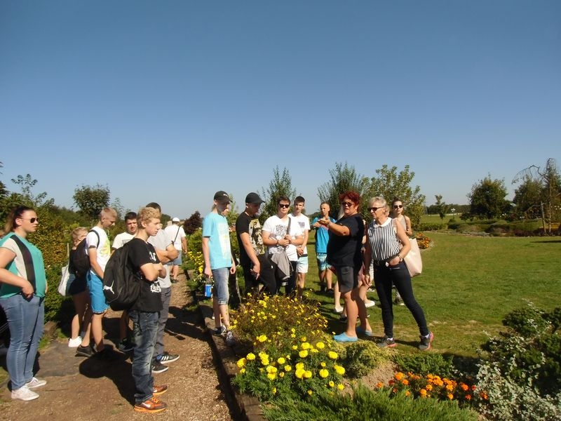 15.09.2016r. uczniowie Technikum Architektury Krajobrazu wraz z przyszłymi naszymi adeptami, uczniami gimnazjum z Zespołu Szkół Ponadpodstawowych im. W. Witosa wzięli udział w wycieczce do Dobrzycy. Wyjazd został zorganizowany przez p. Michalinę Damską w ramach projektu “Pamiętajmy o ogrodach VII” współfinansowanego ze środków Powiatu Nakielskiego. Młodzież wraz z opiekunami podziwiała kompleks ogrodowo-parkowy Hortulus  Spectabilis. Niezwykłe zakątki położone na ponad 7 ha przybliżyła uczestnikom p. Sławomira Kanios-Osman nazywana Prymulką. Uczniowie spacerowali po ogrodach: Energii, 4 Pór Roku, Kamiennym Kręgu, w stylu angielskim i francuskim oraz zachwycili się zegarem  kwiatowym. Sporo radości przysporzyło wszystkim wyszukanie gatunku drzewa, które według wierzeń Celtów charakteryzuje cechy każdego z nas. Jednak najwięcej przyjemności sprawiło wszystkim pokonanie największego na świecie labiryntu grabowego oraz podziwianie widoków rozpościerających się z 20-sto metrowej wieży widokowej. Po obiedzie i krótkim wypoczynku w lesie brzozowym, uczestnicy wyjazdu kupili unikatowe sadzonki roślin do przydomowych ogrodów.  Następnie grupa wyruszyła w dalszą część podróży do Mielna. Piękna pogoda zachęciła wszystkich, do ostatniego pewnie w tym roku, spaceru brzegiem morza. Późnym wieczorem zadowoleni uczestnicy, z fantastycznymi wspomnieniami i pełni nowych pomysłów,  wrócili do Samostrzela.