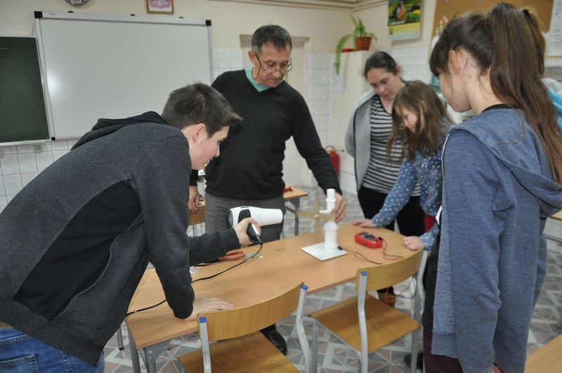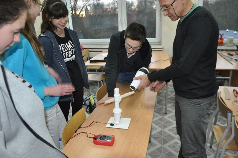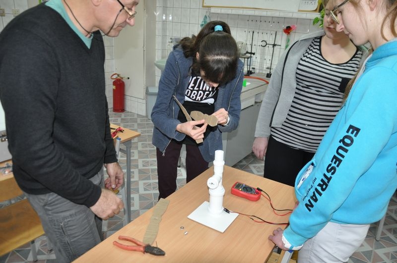 12 grudnia odbyły się ostatnie warsztaty z cyklu „Konstruktorzy marzeń”. Tym razem klubowicze wykonali według własnego pomysłu turbiny wiatrowe. Do ich wykonania posłużyły różne materiały: balsa, aluminium, twarda folia, karton. Wykorzystując suszarkę – źródło wiatru, badaliśmy jaki prąd jest wstanie wytworzyć nasza turbina. Niektóre modele były bardzo udane.