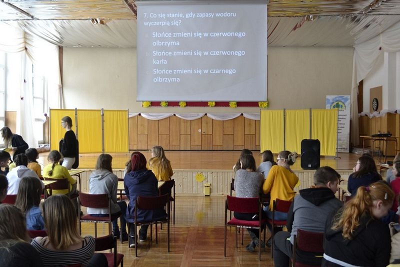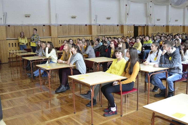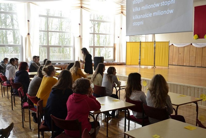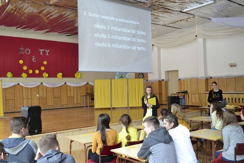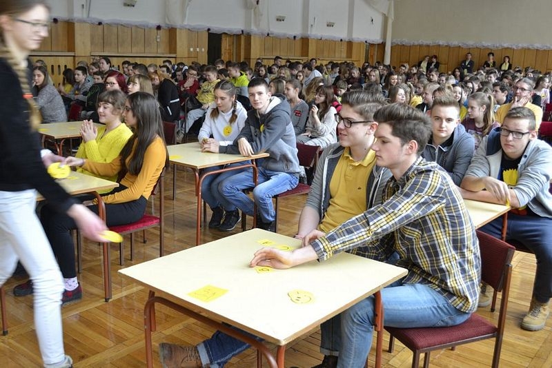 W ostatnim tygodniu przed feriami zimowymi jak co roku nasza szkoła nabrała jeszcze więcej żywych kolorów. We wtorek trzydniową zabawę rozpoczął czerwony – najgorętsza ze wszystkich barw, dynamiczna i przykuwająca uwagę. Często bywa kojarzona z wozami strażackimi, które zostały pomalowane tak, aby były dobrze widoczne ze względów bezpieczeństwa. W tym dniu Samorząd Uczniowski zaprosił na spotkanie z uczniami przedstawicieli najważniejszych służb, Straży Pożarnej i Pogotowia Ratunkowego: dowódcę zmiany Jednostki Ratowniczo-Gaśniczej w Nakle nad Notecią pana kapitana Patryka Zielińskiego, dowódcę zastępu pana młodszego kapitana Jakuba Hamerskiego, i ratownika kierowcę sekcyjnego pana Mateusza Kaczmarka. Przeprowadzili oni pogadankę na temat bezpieczeństwa i przekazali wiedzę i umiejętności udzielania pierwszej pomocy kwalifikowanej. W środę w szkole królował kolor niebieski, najzimniejsza z barw, ale uspokajająca i łagodząca napięcia. Kojarzymy go z policją – niebieskie mundury i radiowozy z daleka budzą respekt. W tym dniu zaprosiliśmy do szkoły przedstawicieli Komendy Powiatowej Policji w Nakle nad Notecią panią sierżant Zofię Wrzeszcz z Zespołu ds. Nieletnich oraz pana aspiranta Marka Moczadło i pana sierżanta sztabowego Mirosława Handzlika z Referatu Drogowego, którzy przeprowadzili pogadankę na temat konsekwencji zachowań niezgodnych z prawem, a w szczególności odpowiedzialności nieletnich. W czwartek zaś nasza szkoła rozbłysła światłem słonecznym. Ciepła żółta barwa sprawiła, że mimo zimy było nam ciepło i wesoło. Kolor ten bowiem czyni człowieka pogodnym, otwartym i bystrym. Samorząd Uczniowski przygotował prezentację na temat słońca, najważniejszej gwiazdy, która od lat fascynuje nie tylko naukowców. Po prezentacji przedstawiciele klas wzięli udział w quizie na temat słońca i trzeba przyznać, że pochłonęli wiedzę z prędkością światła, bowiem wszyscy niemal bezbłędnie odpowiedzieli na pytania. Czas nam umilały i rozgrzewały nas piosenki o słońcu, w tym jedna na żywo „Tyle słońca…” Anny Jantar w wykonaniu członkini Samorządu Kingi Mierwy z klasy I C. Całość obchodów dopełniły zgodne z barwą dnia ubrania uczniów, a ich liczebność ocenimy włączając do punktów w Turnieju Klas. Kolorowy Tydzień jest niewątpliwe wspaniałym pomysłem na rozładowanie napięć końcowosemestralnych poprzez wspólną pouczającą zabawę i doskonałym preludium do wyczekiwanych ferii.