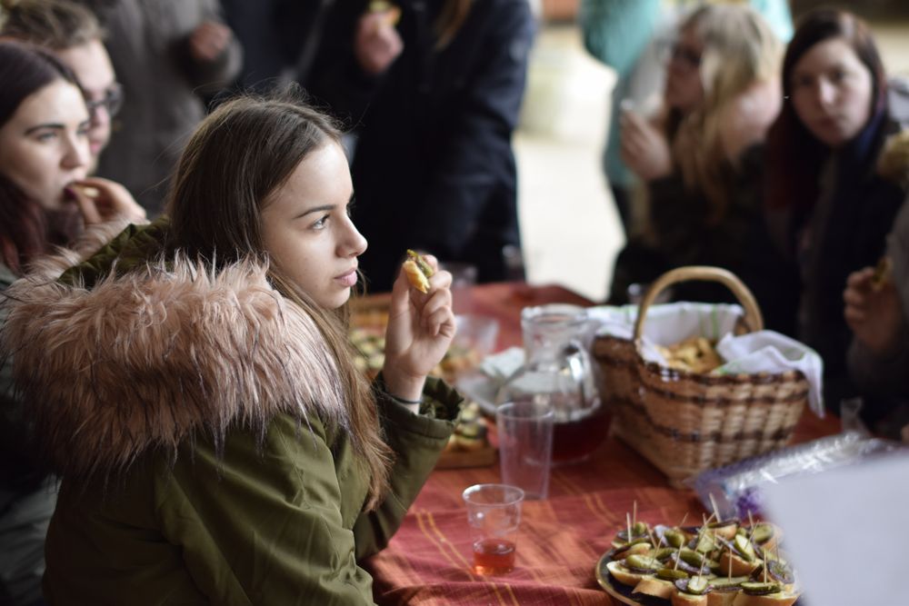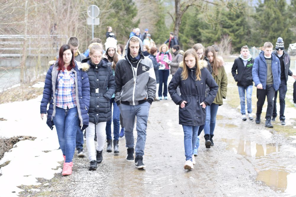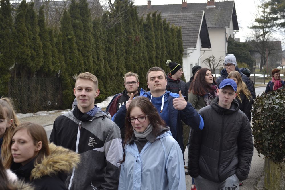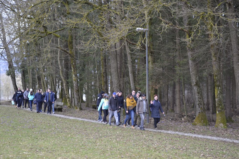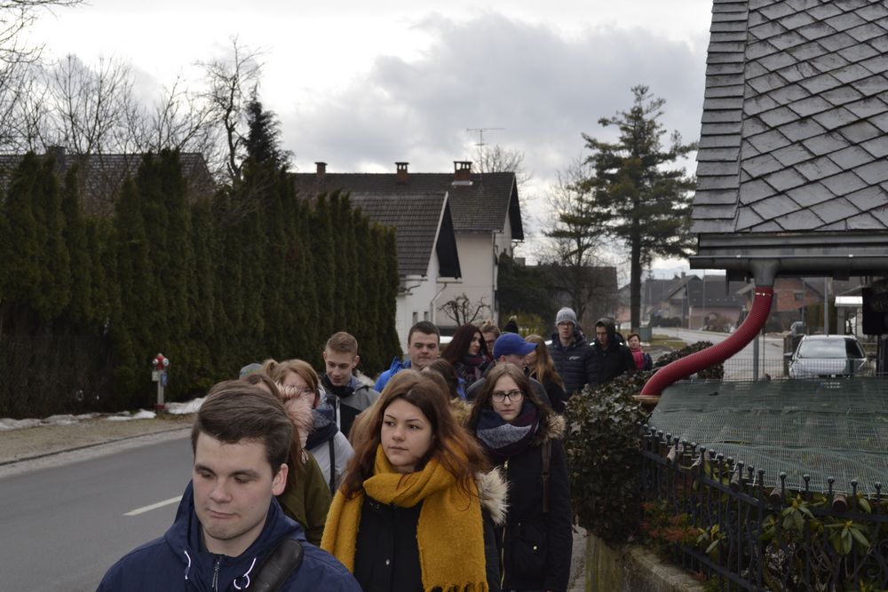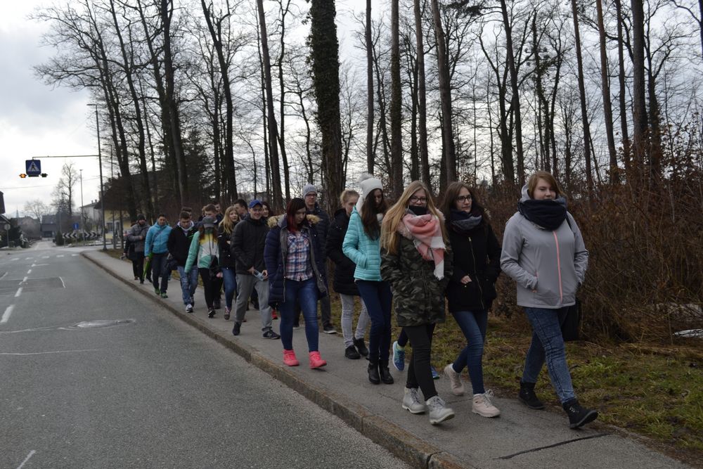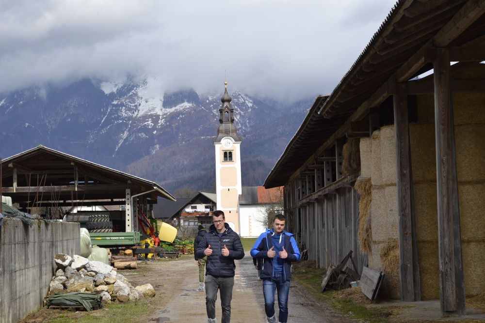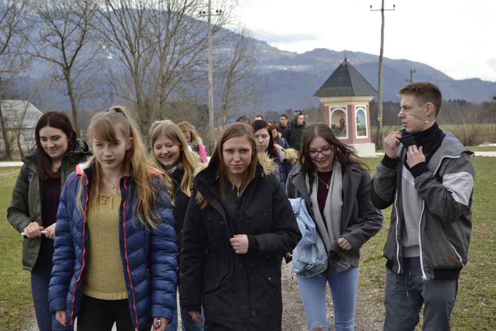 Przedostatni dzień naszej przygody w Słowenii spędziliśmy wraz ze słoweńskimi rówieśnikami. Oprowadzili nas krętymi ścieżkami przez małe, położone u podnóża Alp, miejscowości. Zwiedziliśmy kościoły św. Katarzyny i św. Radegundy, dwa ekologiczne gospodarstwa, gdzie produkuje się mleko kozie i krowie, pozyskuje jajka od kur i wełnę od owiec. Przemierzając urokliwy szlak wzdłuż jednej z najdłuższych (36 km) rzek w Słowenii, Kokry, dowiedzieliśmy się, jakie zwierzęta w niej żyją i jakie rosną wokół rośliny. Stworzyliśmy roczny wykres opadów na tym obszarze i zbadaliśmy pH wody z rzeki, obok której przechodziliśmy. Wynosiło ono 7, co oznacza, że w tej rzece płynie bardzo czysta woda. Miłym zakończeniem dnia był smaczny poczęstunek z lokalnych produktów i przyrodniczy quiz z nagrodami.