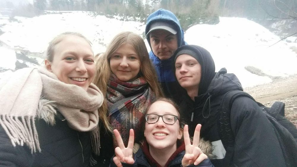 My, z naszymi słoweńskimi znajomymi, Aljażem i Laurą, udaliśmy się na punkt widokowy w Bled. Następnie, idąc wokół jeziora podziwialiśmy piękne widoki, kościół na wyspie osnuty mgłą, która dodatkowo dodawała uroku tej okolicy. Na koniec wypiliśmy smaczną kawę oraz zjedliśmy ciepły posiłek( Magda, Jagoda, Kacper)
