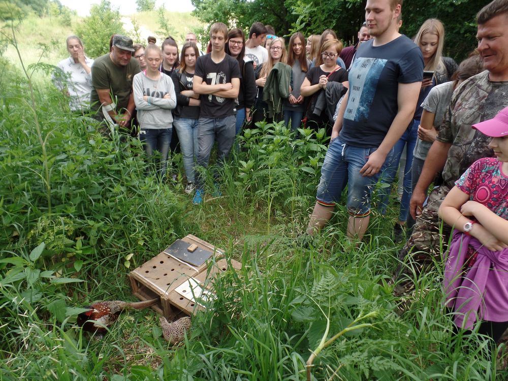 Warto wspomnieć, że w czerwcu bieżącego roku, przy współpracy z panem Zadłużnym nastąpiło wypuszczenie bażantów wyhodowanych przez uczniów technikum weterynarii na terenie łowiska. Rejon ten należy do rezerwatu leśnego „Las Minikowski” i jednocześnie jest włączony do sieci obszarów chronionych Natura 2000. Podczas tej wizyty, Łowczy Ryszard Kotyś omówił kalendarz i zasady polowań w poszczególnych porach roku oraz warunki wstąpienia adeptów do Polskiego Związku Łowieckiego. Sygnalista Zbigniew Kowalski zaprezentował wabienie zwierzyny: dzika, jelenia, sarny, lisa i dzikiego ptactwa. Miłym akcentem przygotowanym przez gospodarzy było ognisko.