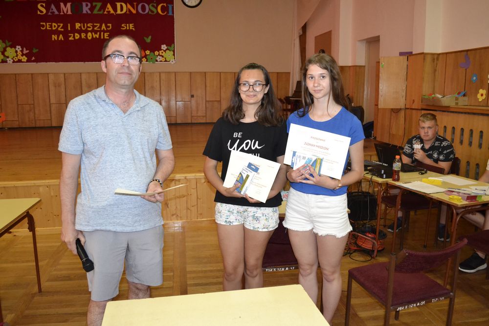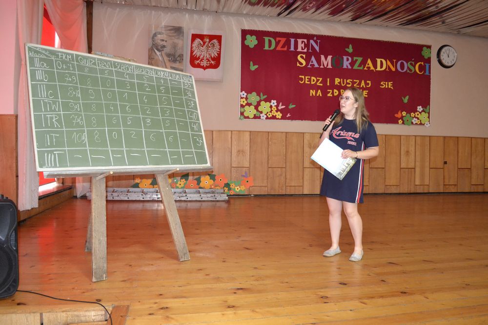 Tradycyjnie kończąc rok wytężonej pracy 12 czerwca Samorząd Uczniowski ZSP w Samostrzelu zorganizował Dzień Samorządności, który w tym roku przebiegał pod hasłem „Jedz i ruszaj się na zdrowie”. Imprezę zapoczątkowała projekcja nagranych przez klasy filmików przedstawiających klasowych kucharzy podczas przyrządzania zdrowych potraw. Jury w składzie: pani wice dyrektor Ewa Makowska, pan Rafał Kempka oraz członek SU Daria Mateja oceniało filmy pod względem artystycznym i merytorycznym. Tu nasi uczniowie wykazali się nie tylko umiejętnościami i pomysłowością w zakresie kuchni, ale i zdolnościami aktorskimi i predyspozycjami prezenterskimi. Następnie przedstawiciele klas odpowiadali na pytania dotyczące zdrowego stylu życia w quizie przygotowanym i przeprowadzonym przez przedstawicieli SU. Po tej wirtualnej dawce zdrowia i smaku przenieśliśmy się do cześci praktycznej. W holu głównym w „Zdrowe Jadłodajni” mogliśmy wszyscy skosztować przepysznych i zdrowych potraw i napojów wcześniej przygotowanych i zaprezentowanych na filmikach. W kolejnej cześć imprezy uczestniczyliśmy w międzyklasowych zmaganiach sportowych, nad przebiegiem których czuwali pani Teresa Domalewska, pan Radosław Hyży i pani Dorota Szarwińska. Wszystkie konkurencje punktowane były w rankingu Dnia Samorządności, a następnie zdobyte punkty Samorząd Uczniowski wliczył do całorocznego Turnieju Klas.