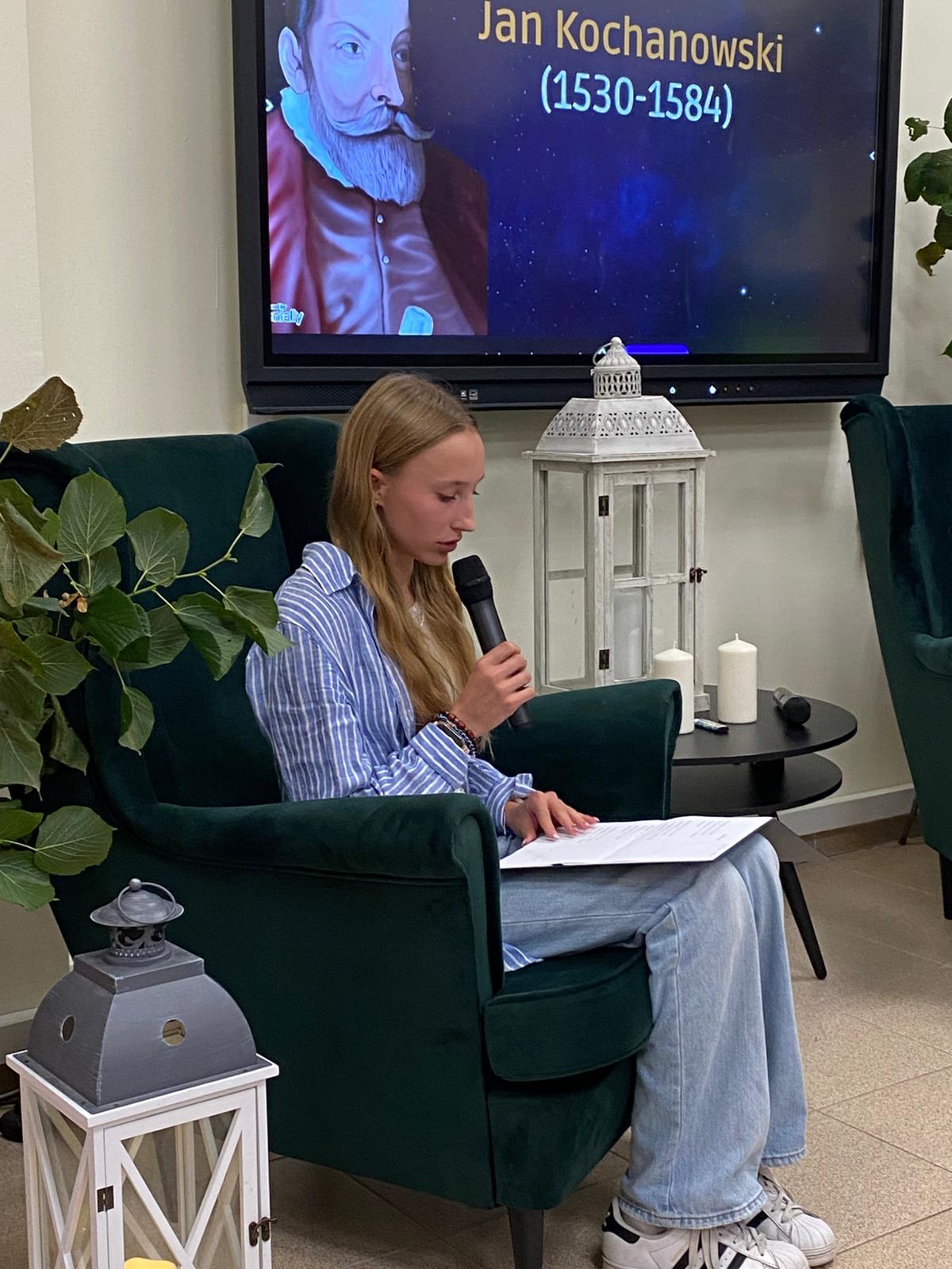 Narodowe Czytanie to akcja społeczna promująca czytelnictwo i znajomość klasyki literatury polskiej. Organizowana jest od 2012r. pod patronatem Prezydenta RP. Tematem tegorocznego czytania jest poezja Jana Kochanowskiego. Uczniowie ZSCKR im. W. Witosa w Samostrzelu dołączyli do akcji zorganizowanej przez Gminną Bibliotekę Publiczną w Sadkach 12.09.2025r. Naszą szkołę pod opieką p. B. Sobierajskiej reprezentowali: Zosia Piszczek z kl. I HTO, Karolina Krzyżaniak z kl. III LT, Natalia Smełsz z kl. III OT i Aleksandra Cabaj z kl. IV HT. Każdy uczestnik mógł w tej poezji odnaleźć cząstkę siebie: radość, smutek, pociechę i pochwałę życia, a obcowanie z dorobkiem renesansowego artysty to niezapomniane przeżycie.