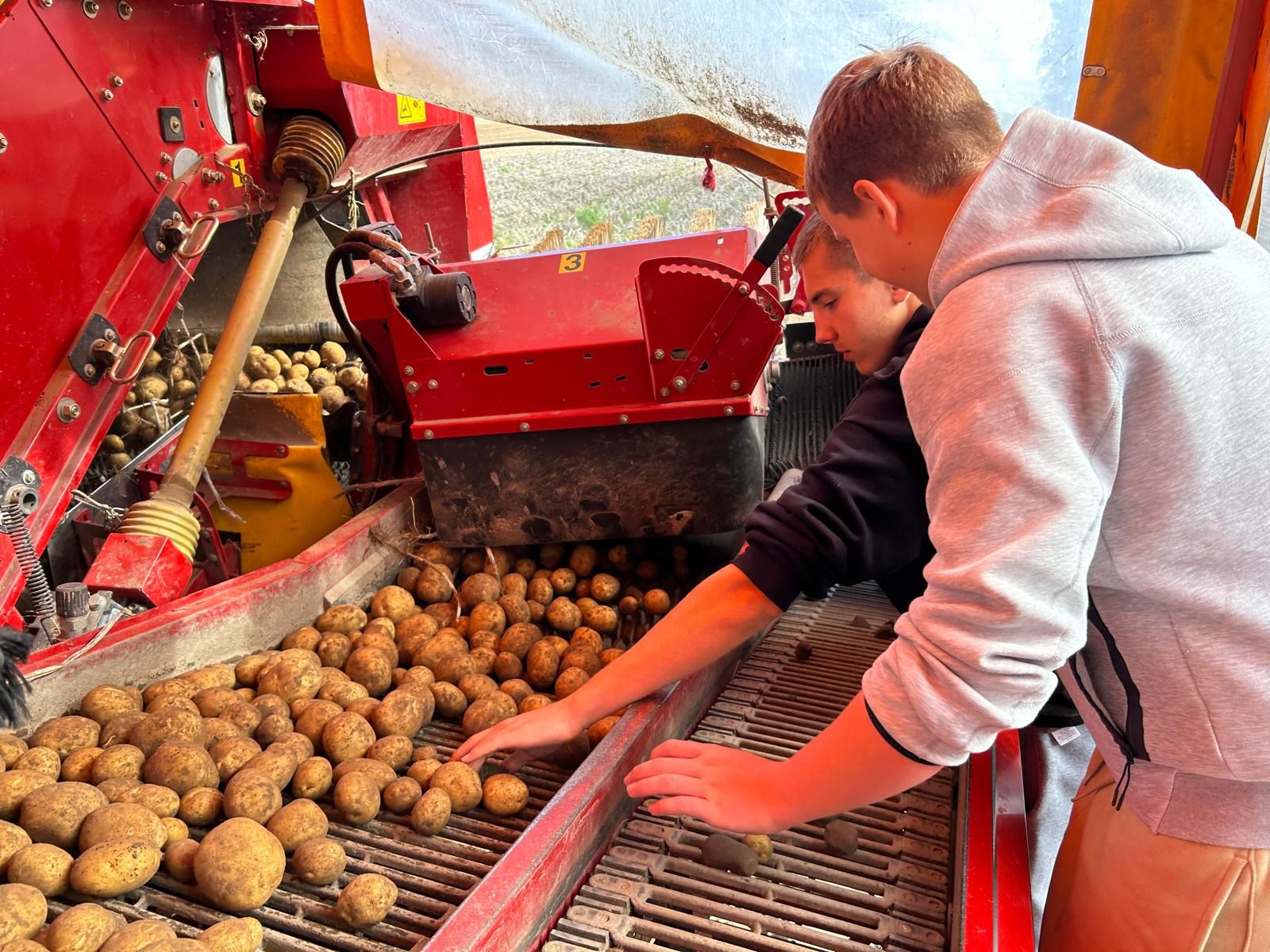 Młodzież miała okazję zobaczyć pracę agregatu uprawowego, a także z bliska przyjrzeć się kombajnowi ziemniaczanemu – wsiąść do jego kabiny i spróbować swoich sił przy taśmie selekcyjnej.