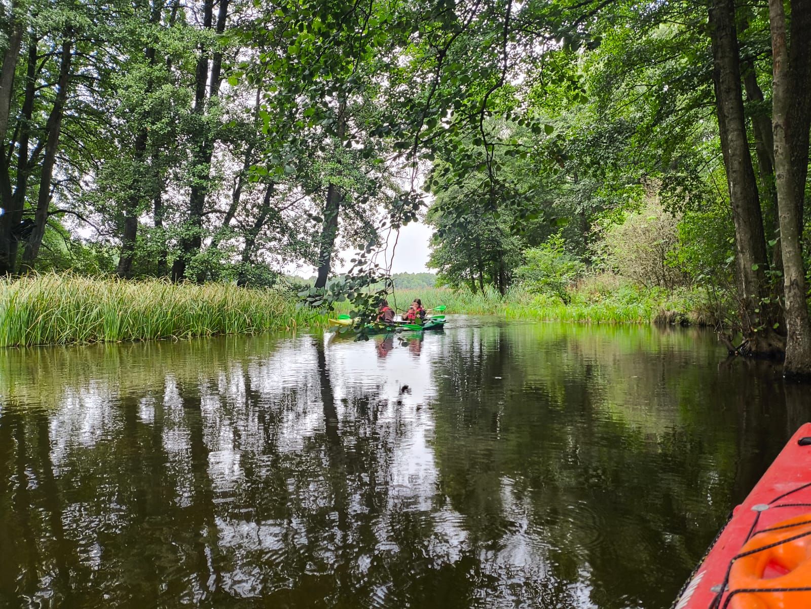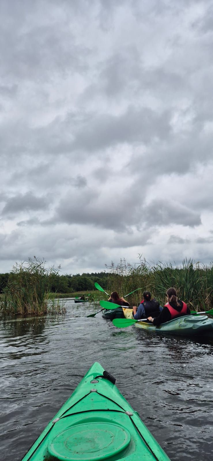 Początkowo powitał nas ciepły, letni deszcz, który szybko ustał i nie przeszkodził w dalszej przygodzie. Wkrótce wyschliśmy i mogliśmy w pełni cieszyć się urokami spływu, podziwiać jeziora i lasy oraz spędzać czas w świetnej atmosferze w gronie uczestników.