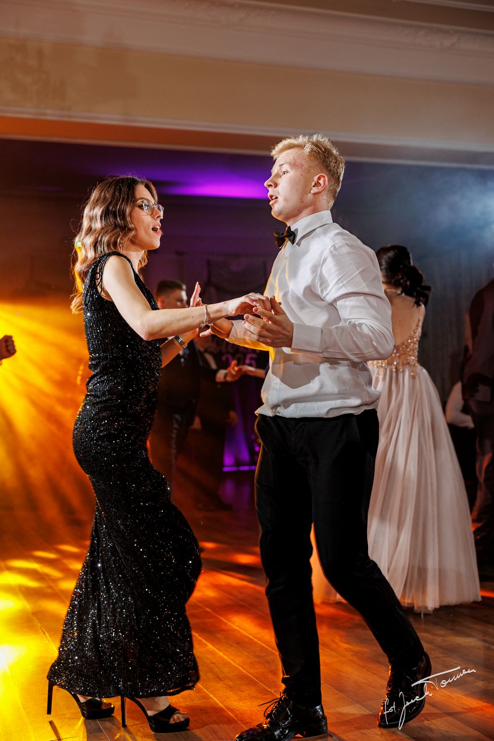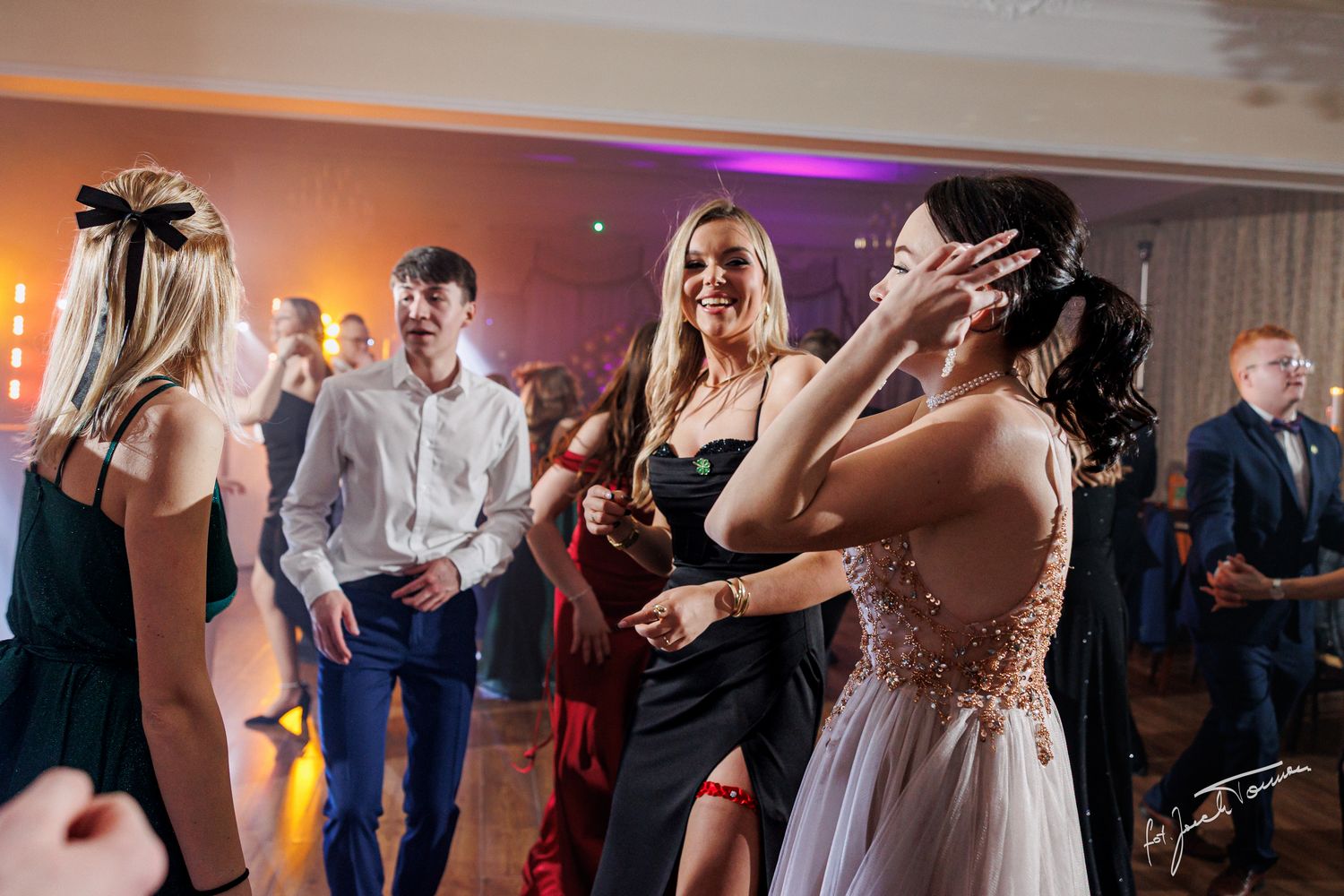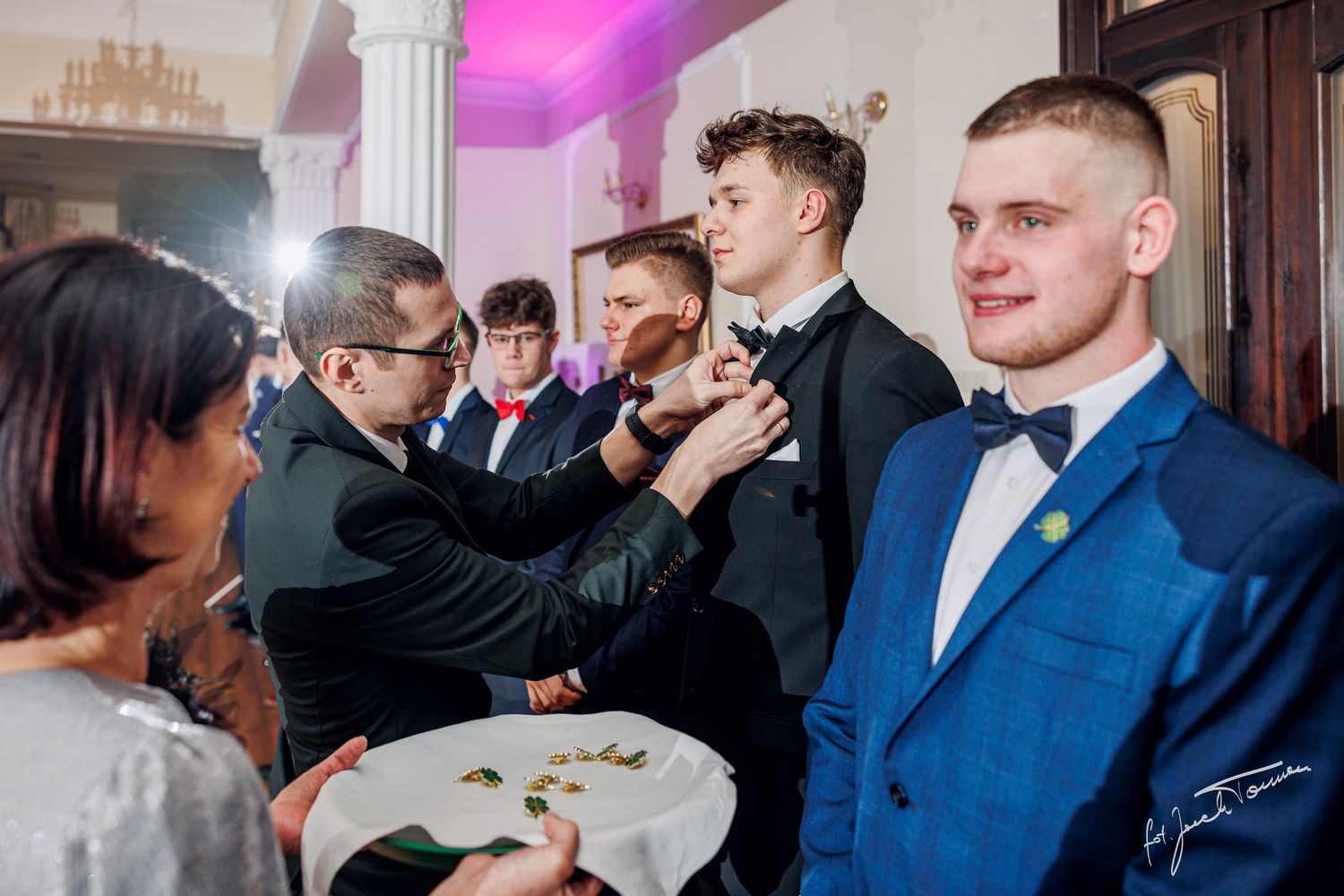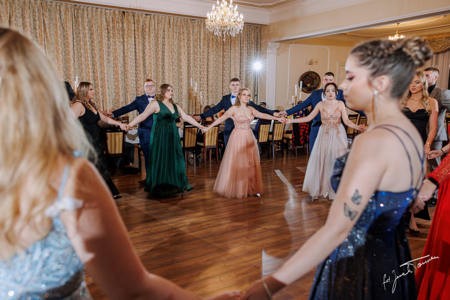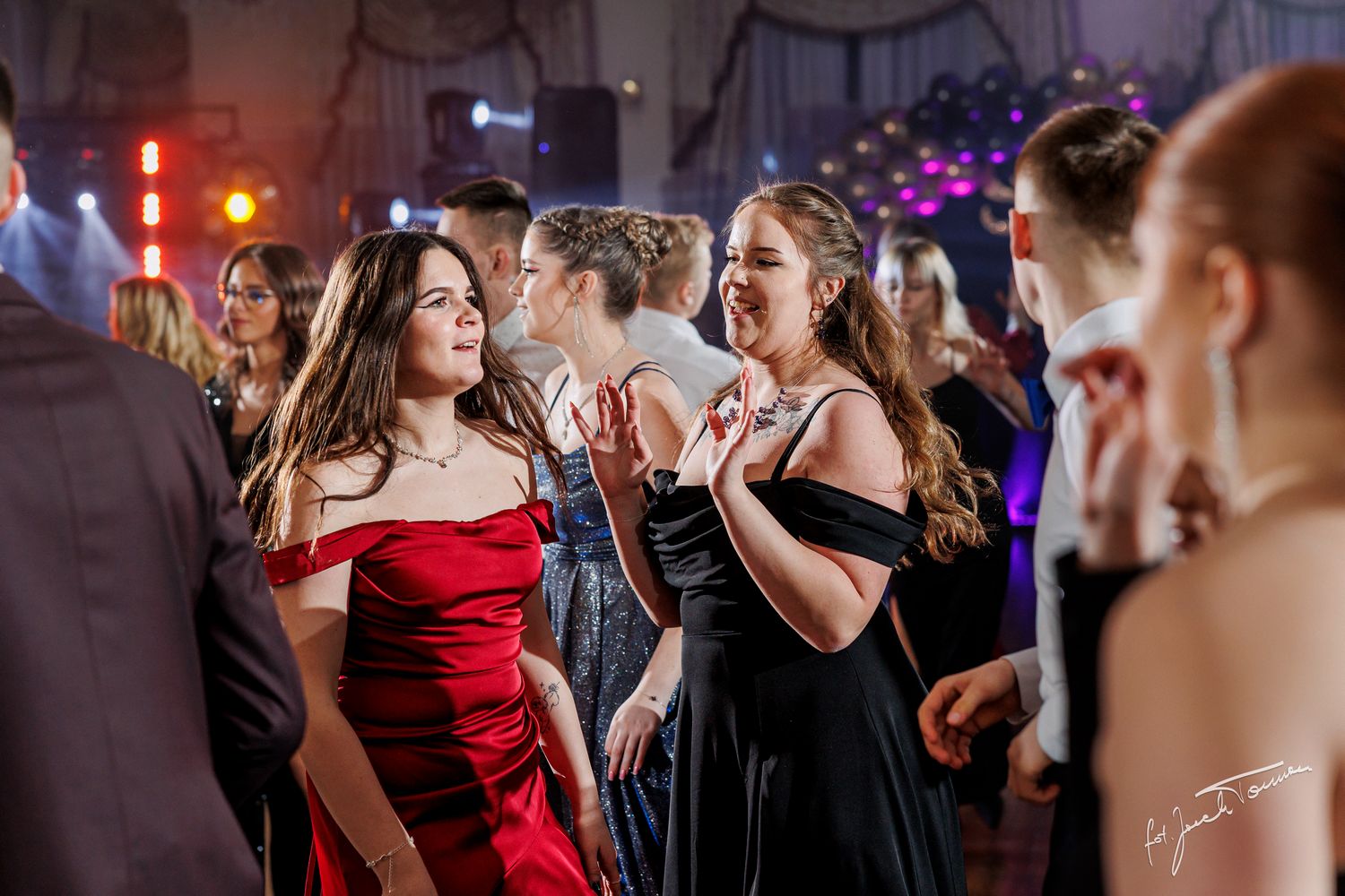Po oficjalnej części przyszedł czas na tańce i radosną zabawę. Tylko na chwilę przerwali je wychowawcy – Ewa Makowska i Bartłomiej Wojciechowski – by wręczyć swoim uczniom czterolistne koniczynki na szczęście. Ten miły gest wywołał uśmiechy na twarzach maturzystów.