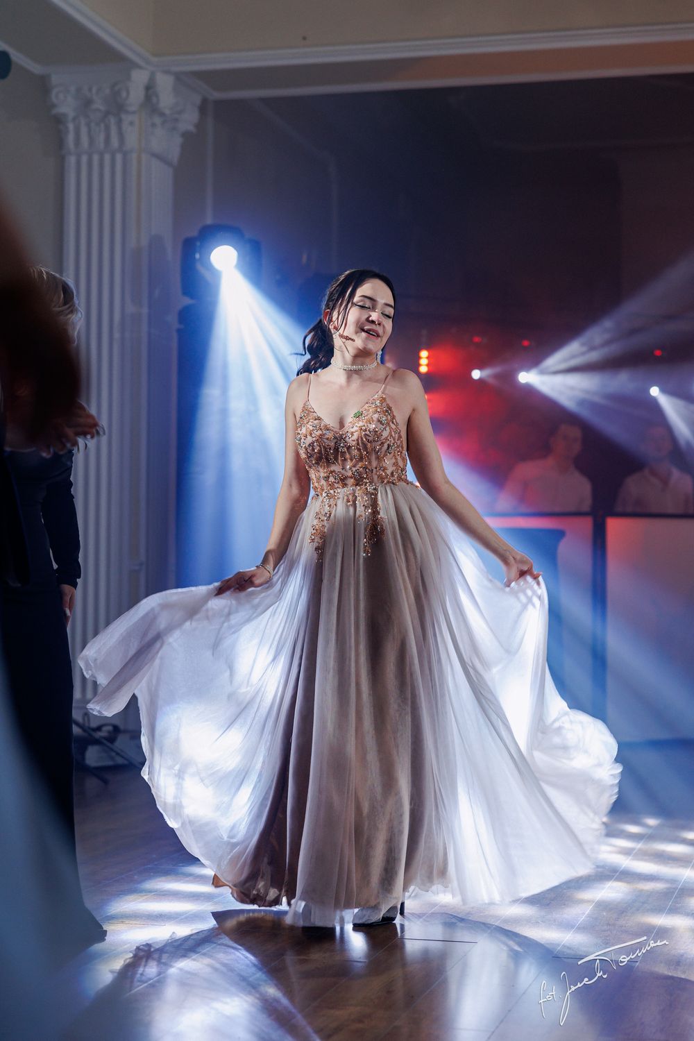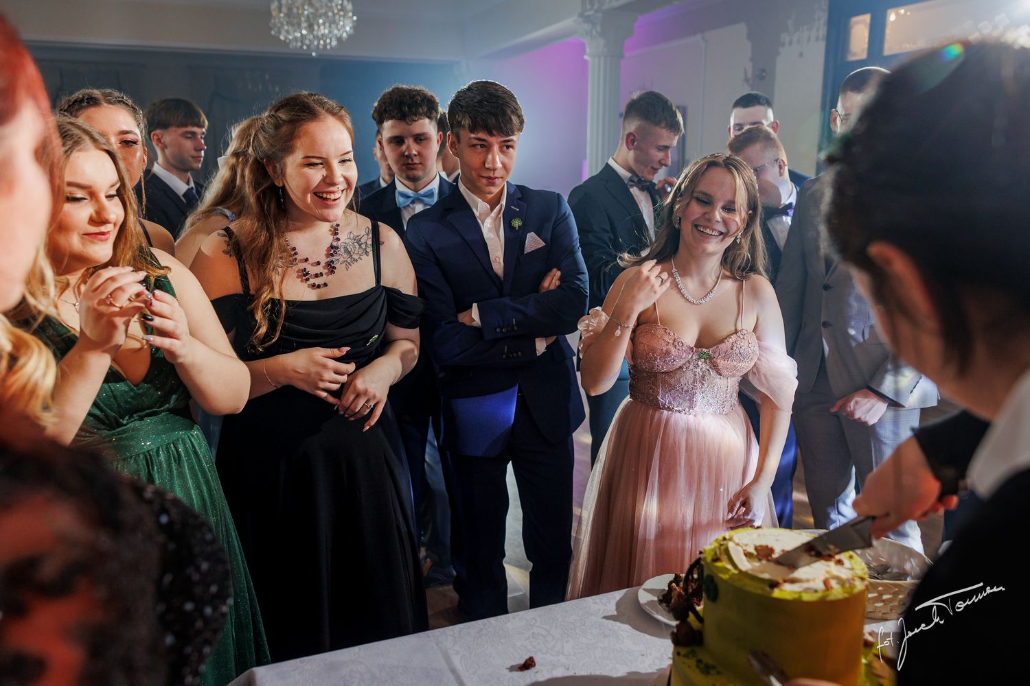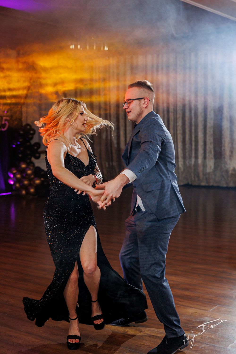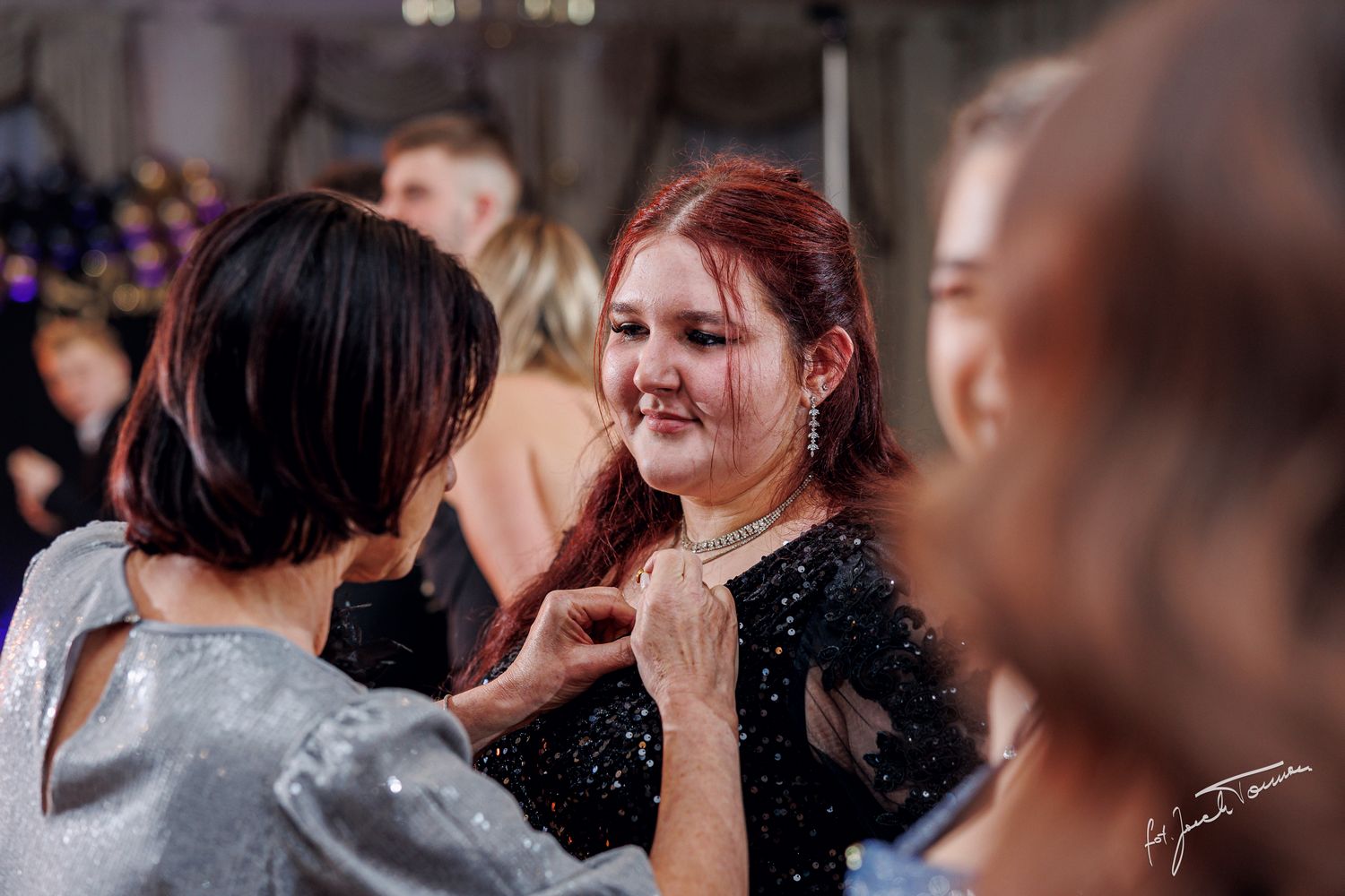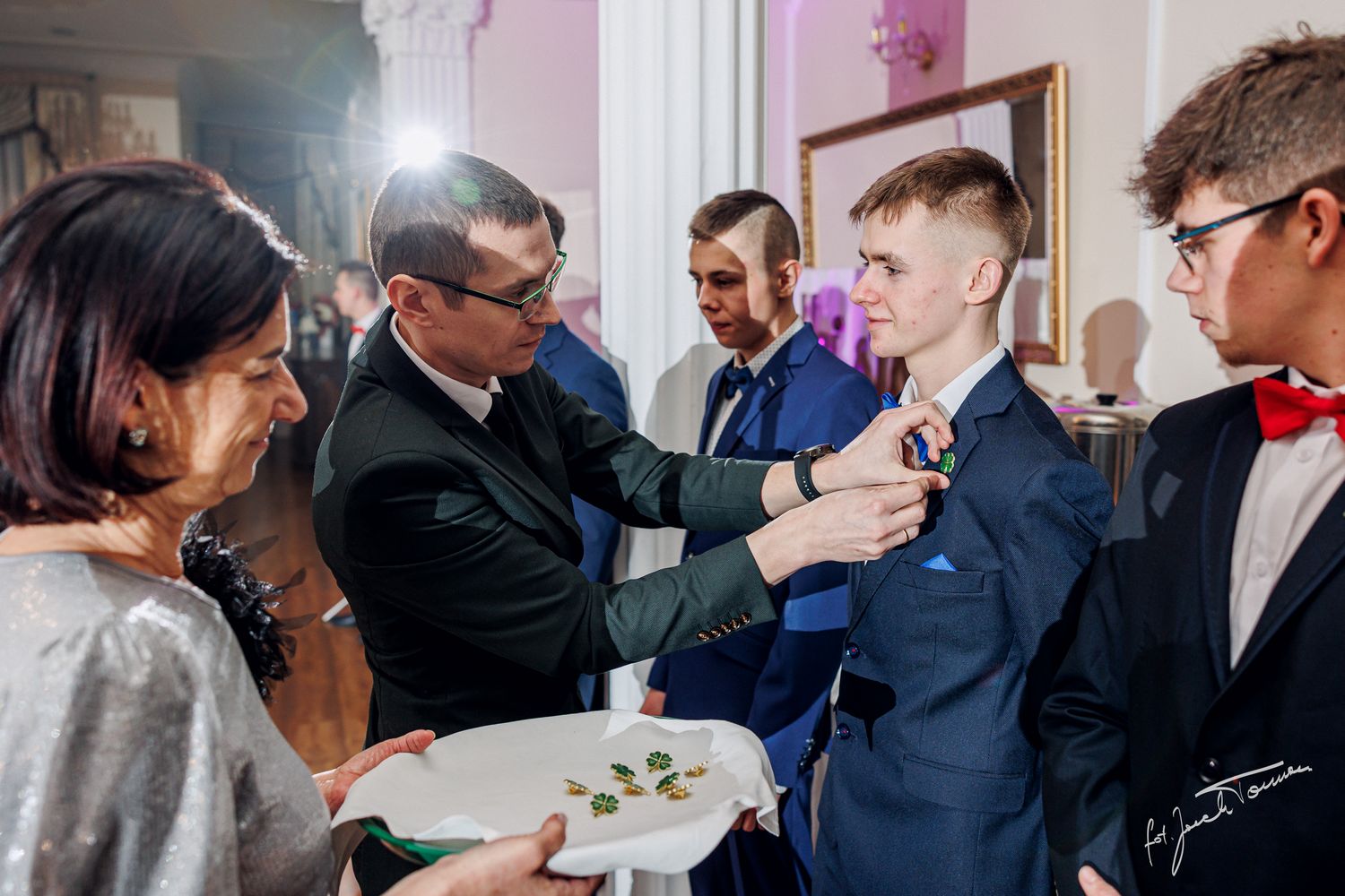 Po oficjalnej części przyszedł czas na tańce i radosną zabawę. Tylko na chwilę przerwali je wychowawcy – Ewa Makowska i Bartłomiej Wojciechowski – by wręczyć swoim uczniom czterolistne koniczynki na szczęście. Ten miły gest wywołał uśmiechy na twarzach maturzystów.