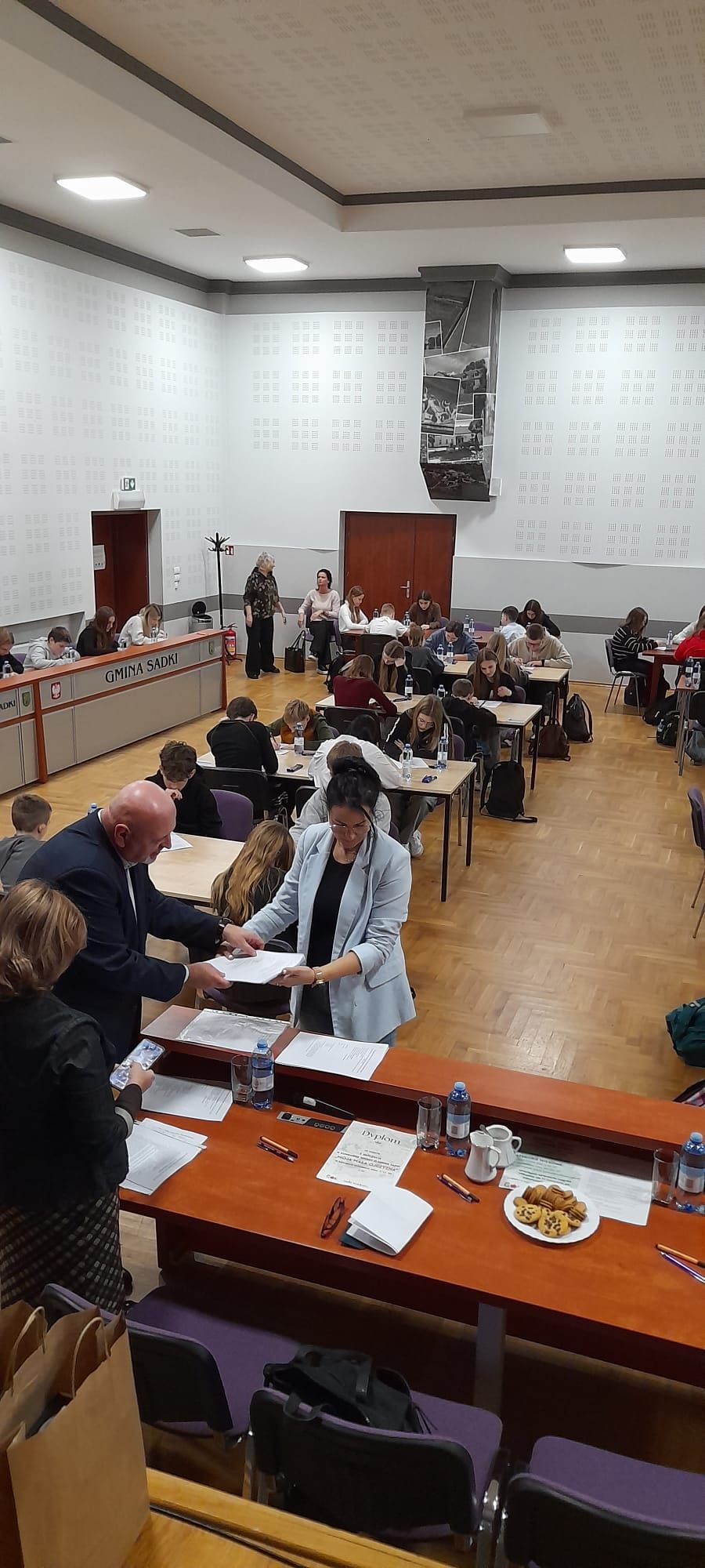 W piątek, 14 listopada, w Gminnym Ośrodku Kultury w Sadkach odbył się XII Konkurs Wiedzy o Gminie Sadki „Moja Mała Ojczyzna”. Wydarzenie, które na stałe wpisało się w kalendarz imprez promujących edukację regionalną, jak również wyjątkowość dziejów i unikalność krajobrazu tej części powiatu nakielskiego oraz Krajny, przyciągnęło rekordową liczbę uczniów szkół podstawowych i ponadpodstawowych. Zespół Szkół Centrum Kształcenia Rolniczego im. Wincentego Witosa w Samostrzelu reprezentowała dziewiętnastoosobowa grupa, która stanęła w konkursowe szranki rozwiązując przygotowany przez organizatorów test wiedzy sprawdzający wiadomości z zakresu historii, środowiska geograficznego oraz regionaliów Sadek i okolic. Pytania dotyczyły treści miejscowych legend, wymagały orientacji w tematyce zabytków i miejsc pamięci, odwoływały się do statystycznych ciekawostek. Zacięta, cechująca się wysokim poziomem rywalizacja wyłoniła tegorocznych laureatów. W kategorii szkół ponadpodstawowych zostali nimi: