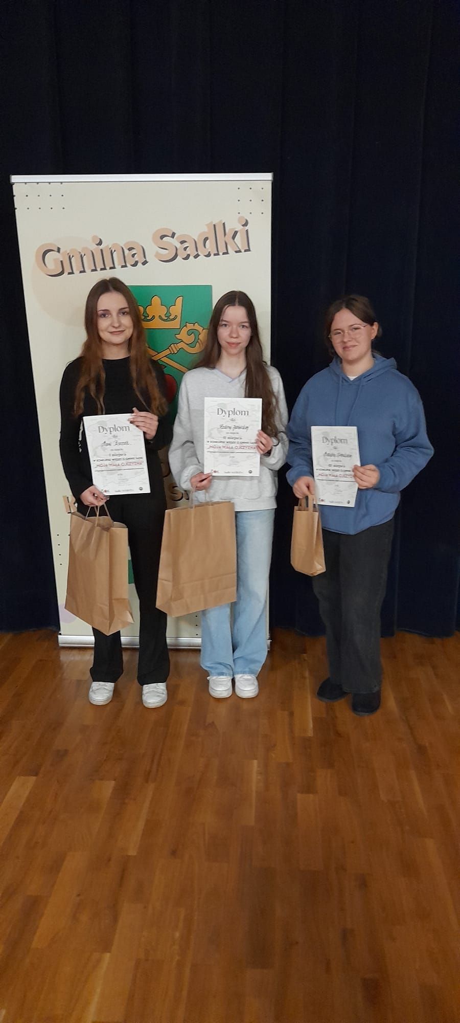 Wyróżnione osoby otrzymały przygotowane przez organizatorów dyplomy i nagrody rzeczowe, które osobiście wręczył wójt gminy Sadki, Pan Michał Piszczek.