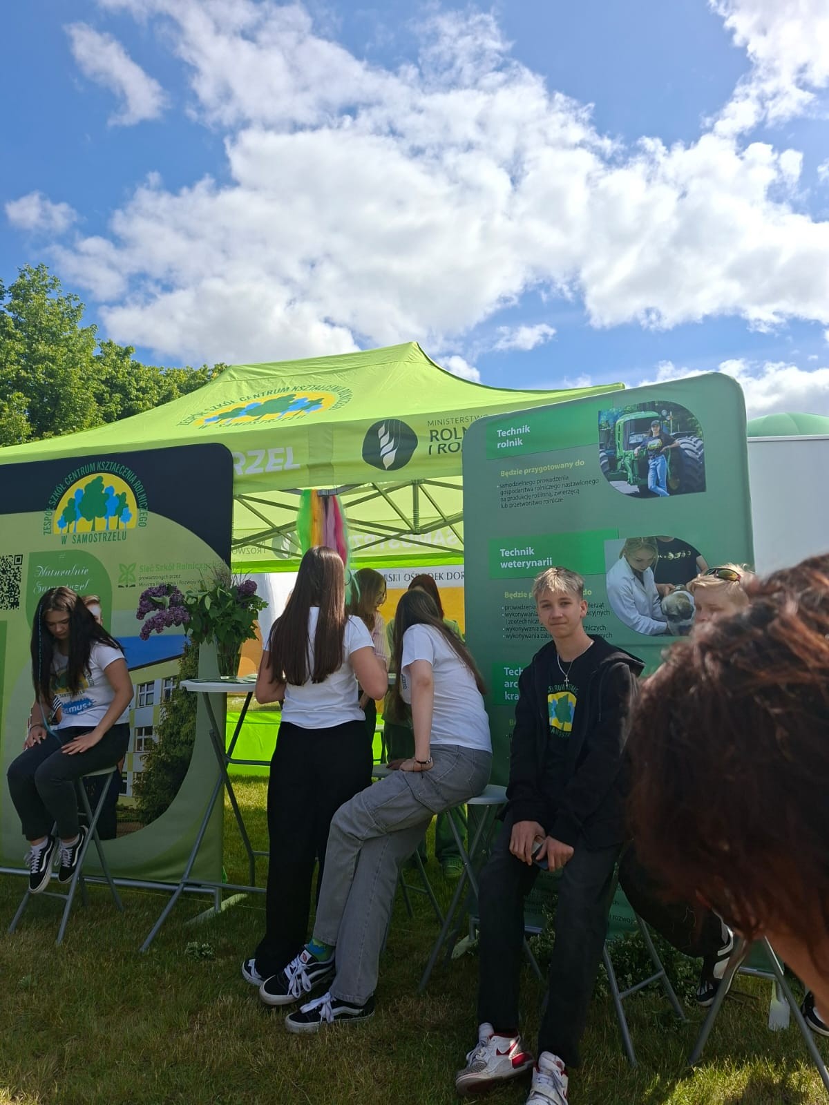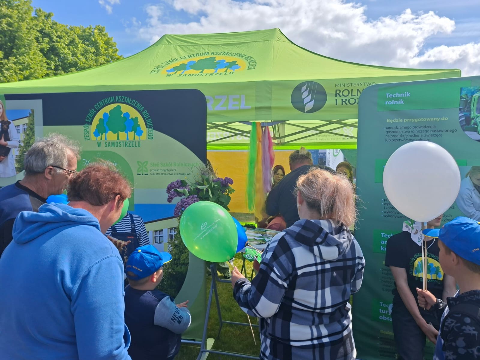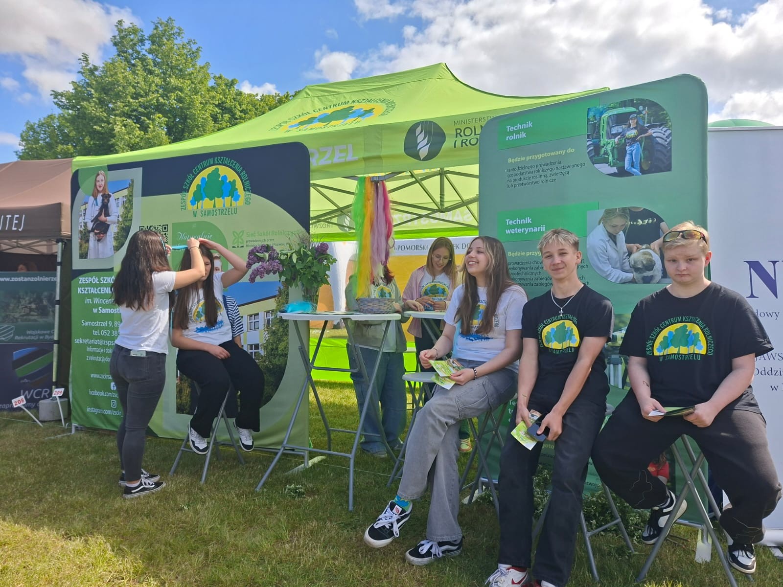 Uczniowie ZSCKR w Samostrzelu przygotowali stanowisko, na którym przedstawili  kierunki kształcenia zarówno dla młodzieży, jak i dorosłych. Udział w imprezie umożliwił przyszłym technikom architektury krajobrazu, technikom turystyki na obszarach wiejskich, technikom weterynarii oraz technikom rolnictwa zaprezentowanie swoich umiejętności zawodowych. Młodzież z zaangażowaniem przekazywała odwiedzającym stanowisko informacje dotyczące projektowania i urządzania ogrodów, pielęgnacji roślin oraz możliwości uzyskania kwalifikacji przez młodzież i dorosłych w formie Kwalifikacyjnych Kursów Zawodowych kształcących w zwodach rolnik, technik rolnik, technik architektury krajobrazu. Dodatkową atrakcją dla najmłodszych, przygotowaną przez uczennice,  było zaplatanie warkoczyków oraz robienie zmywalnych tatuaży.
