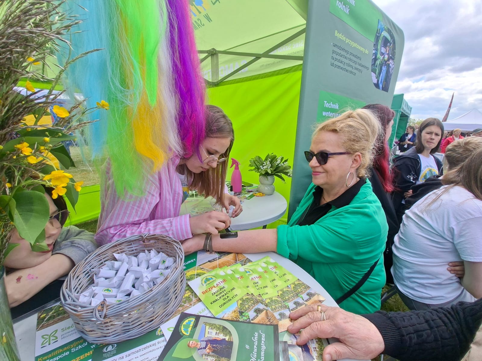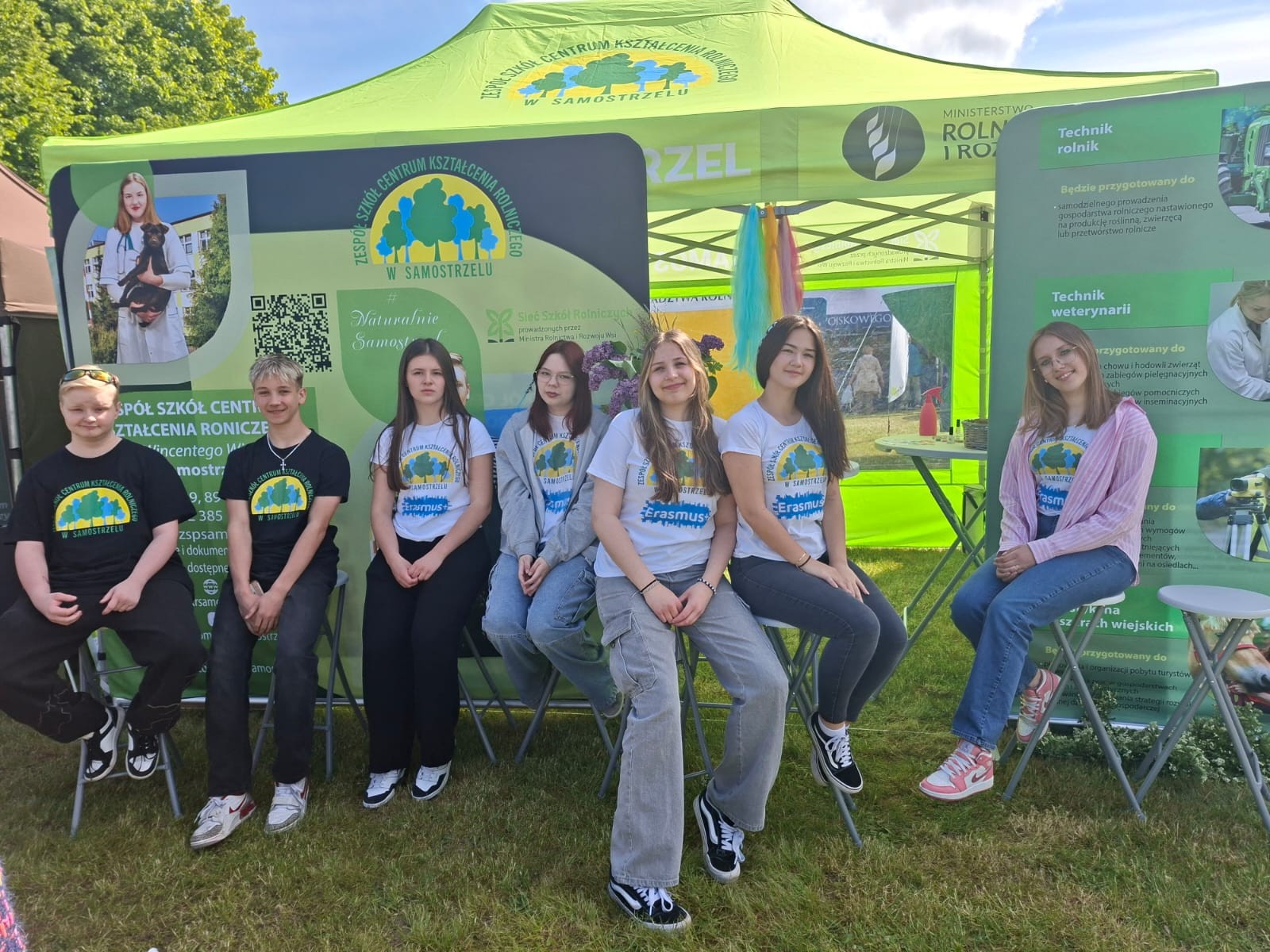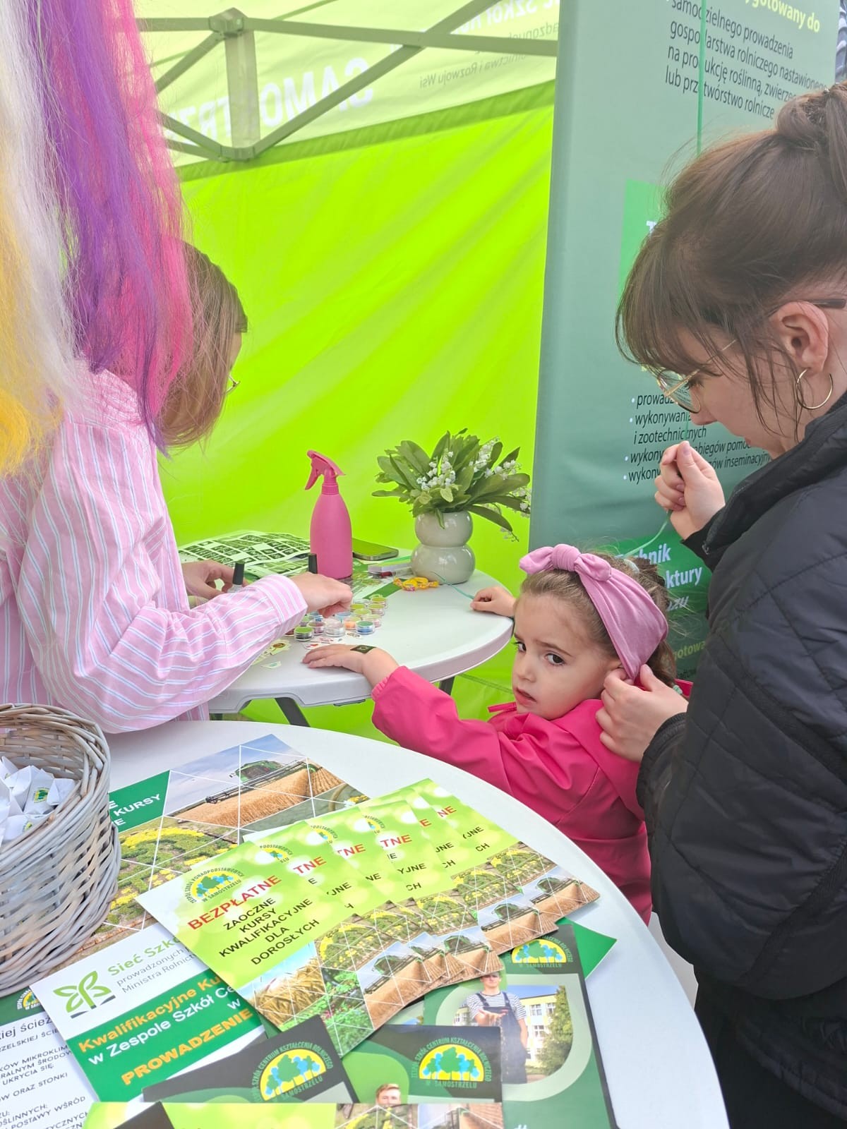 Uczniowie ZSCKR w Samostrzelu przygotowali stanowisko, na którym przedstawili  kierunki kształcenia zarówno dla młodzieży, jak i dorosłych. Udział w imprezie umożliwił przyszłym technikom architektury krajobrazu, technikom turystyki na obszarach wiejskich, technikom weterynarii oraz technikom rolnictwa zaprezentowanie swoich umiejętności zawodowych. Młodzież z zaangażowaniem przekazywała odwiedzającym stanowisko informacje dotyczące projektowania i urządzania ogrodów, pielęgnacji roślin oraz możliwości uzyskania kwalifikacji przez młodzież i dorosłych w formie Kwalifikacyjnych Kursów Zawodowych kształcących w zwodach rolnik, technik rolnik, technik architektury krajobrazu. Dodatkową atrakcją dla najmłodszych, przygotowaną przez uczennice,  było zaplatanie warkoczyków oraz robienie zmywalnych tatuaży.