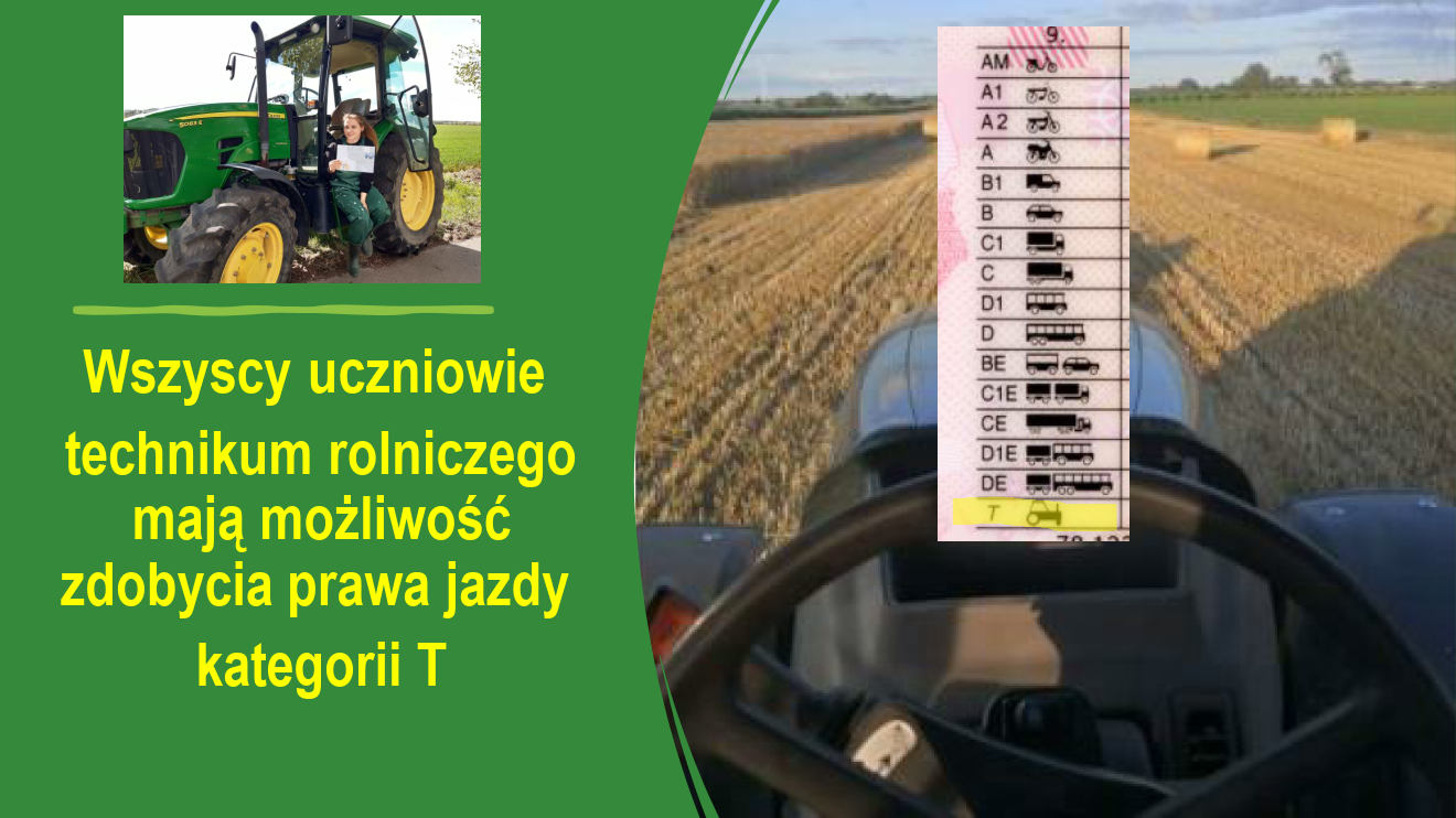 Wszyscy uczniowie technikum rolniczego mają możliwość zdobycia prawa jazdy kategorii B i T.